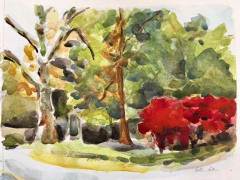 Shadows Snake Between Trees, watercolor, 9" x 6"